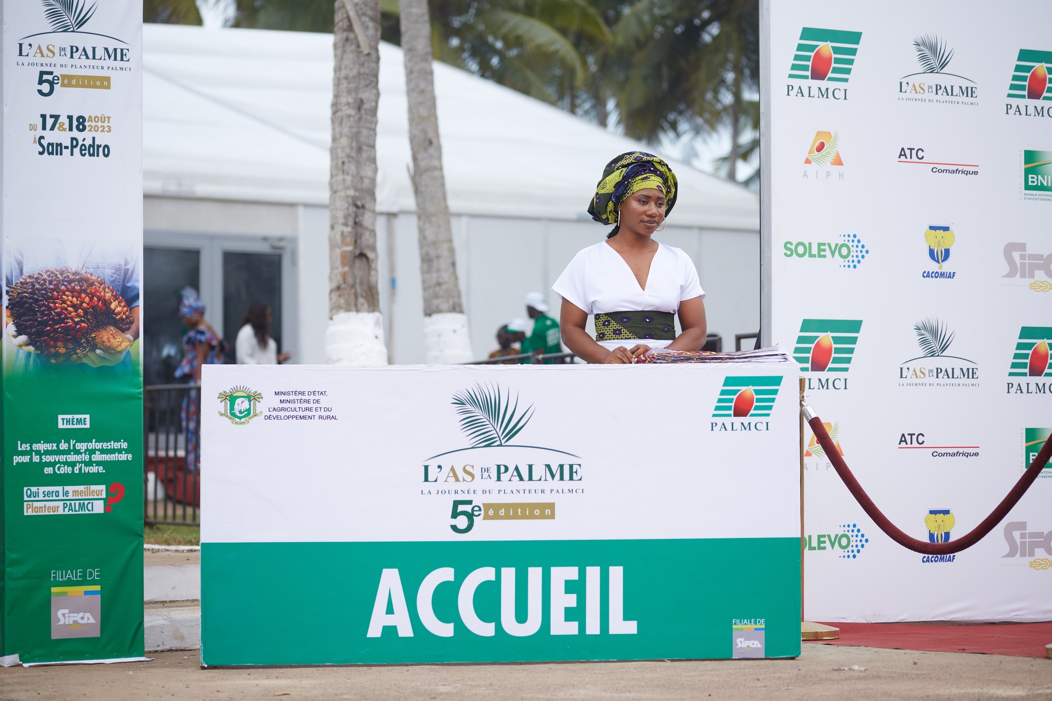 Les 17 et 18 août derniers, s'est tenue à San Pedro la 5ème édition de la Journée Planteur PALMCI. Cet événement majeur a été l'occasion de célébrer et de récompenser les planteurs de palmiers à huile pour leurs efforts et leur contribution à ce secteur vital. Durant ces deux journées, un village d'exposition a été aménagé, accueillant les partenaires, des performances artistiques ainsi qu'un espace de restauration. Parmi les participants figuraient des personnalités de haut rang, dont le Ministre de l'Agriculture, Monsieur Kobenan Kouassi ADJOUMANI, le Ministre-Gouverneur, Monsieur Légré Philippe, le représentant du Ministre des Eaux et Forêts, le Maire de San Pedro, Monsieur Anoblé Miézan Félix, ainsi que des autorités locales. La coordination de cet événement a été confiée aux pros de l’event, qui ont contribué au succès de cette édition. Nous tenons à exprimer notre profonde gratitude envers PALMCI pour la confiance accordée et pour la mise en valeur de ce rassemblement significatif.