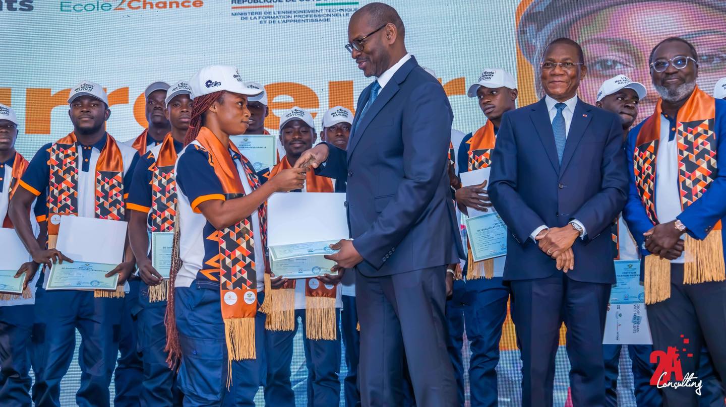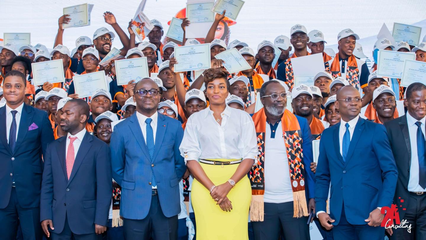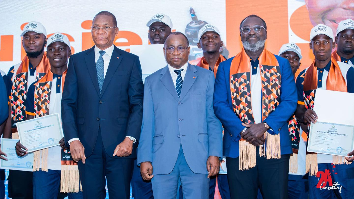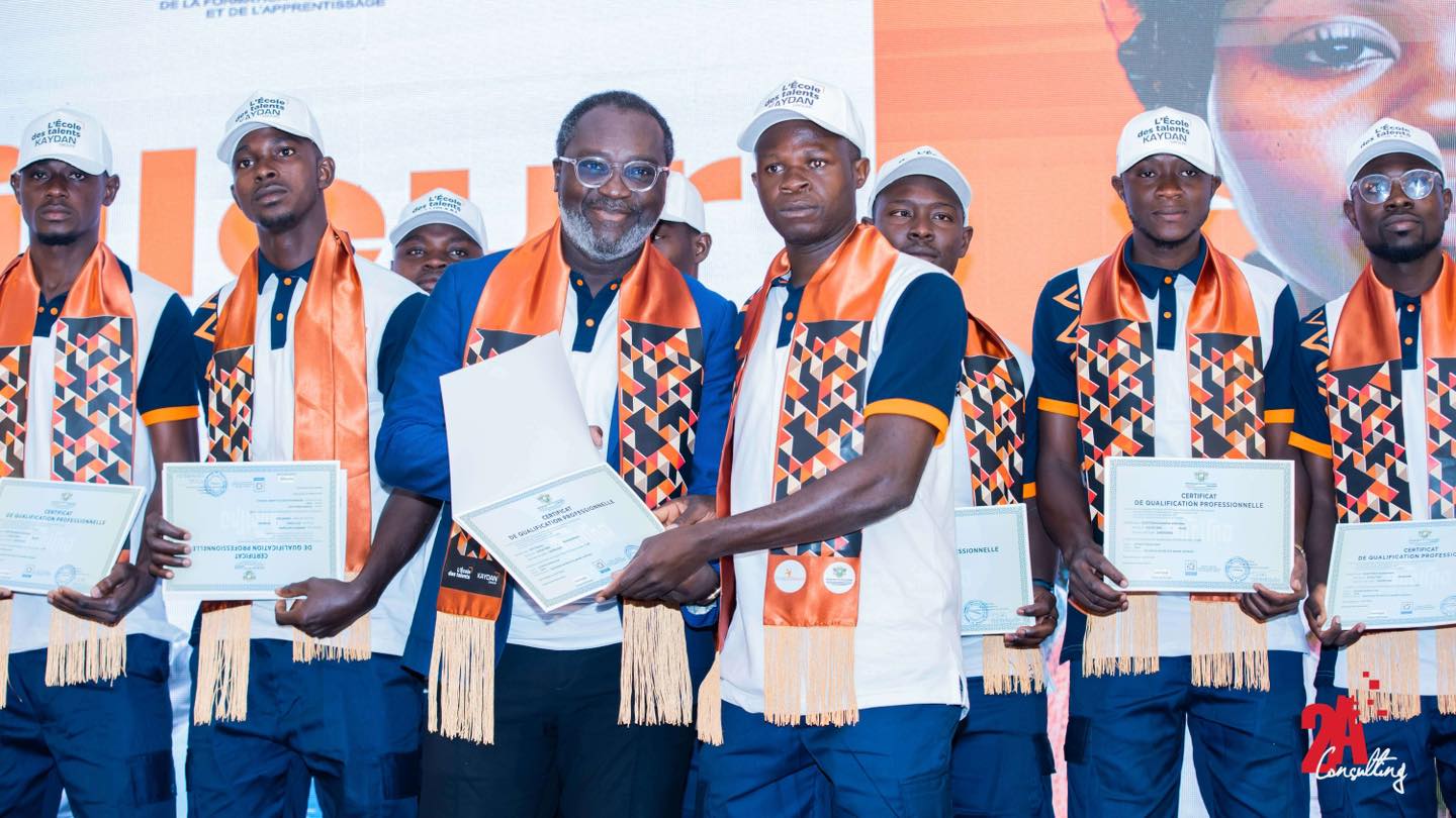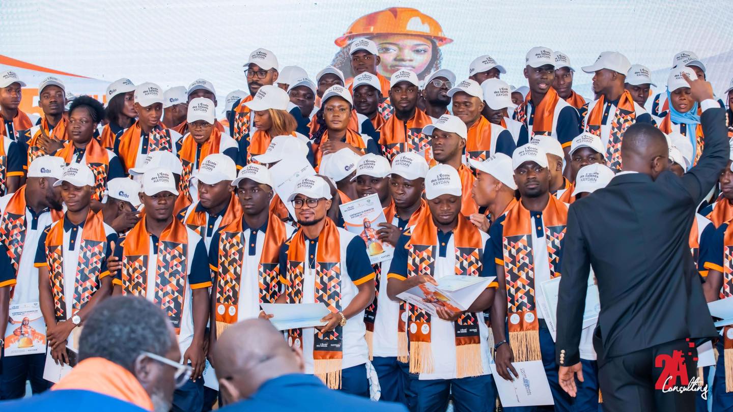 KAYDAN FÊTE SES TALENTS ! Le Jeudi 25 juillet 2024 Kaydan Groupe a fièrement fêté des talents bien particuliers. La salle des fêtes du Sofitel Hôtel Ivoire a vibré d’émotions à l’occasion de la cérémonie de remise de diplômes de l’école des talents. Une matinée bien spéciale pour honorer les 169 récipiendaires, qui ont brillé par l’excellence de leurs résultats dans des disciplines largement négligées. L’école des talents est un programme de formation dans la menuiserie, la maçonnerie, le coffrage, la peinture, le staff, la ferraille, la ferronnerie, etc. visant des jeunes de 18 à 25 ans dans le but de valoriser ces métiers et répondre à la demande du marché en profils de techniciens spécialisés. C’est environ 500 participants dans une ambiance conviviale qui ont honoré ce rendez-vous : parents, amis, directeurs et représentants d’institutions, Directeurs Généraux, etc. Certains Ministres ont même tenu à honorer l’évènement de leur présence : M. Bruno Nabagné KONE des ministres dont le Ministre de la construction, du logement et de l’urbanisme) et M. N’Guessan KOFFI (ministre de l’enseignement technique, de la formation professionnelle et de l’apprentissage…). Cette première cohorte avec l’appui du Groupe KAYDAN à réussi à rehausser l’estime de ces métiers négligés, pourtant déterminants dans leur sphère ; et votre agence évènementiel 2A consulting est fière d’avoir organisé cet évènement.